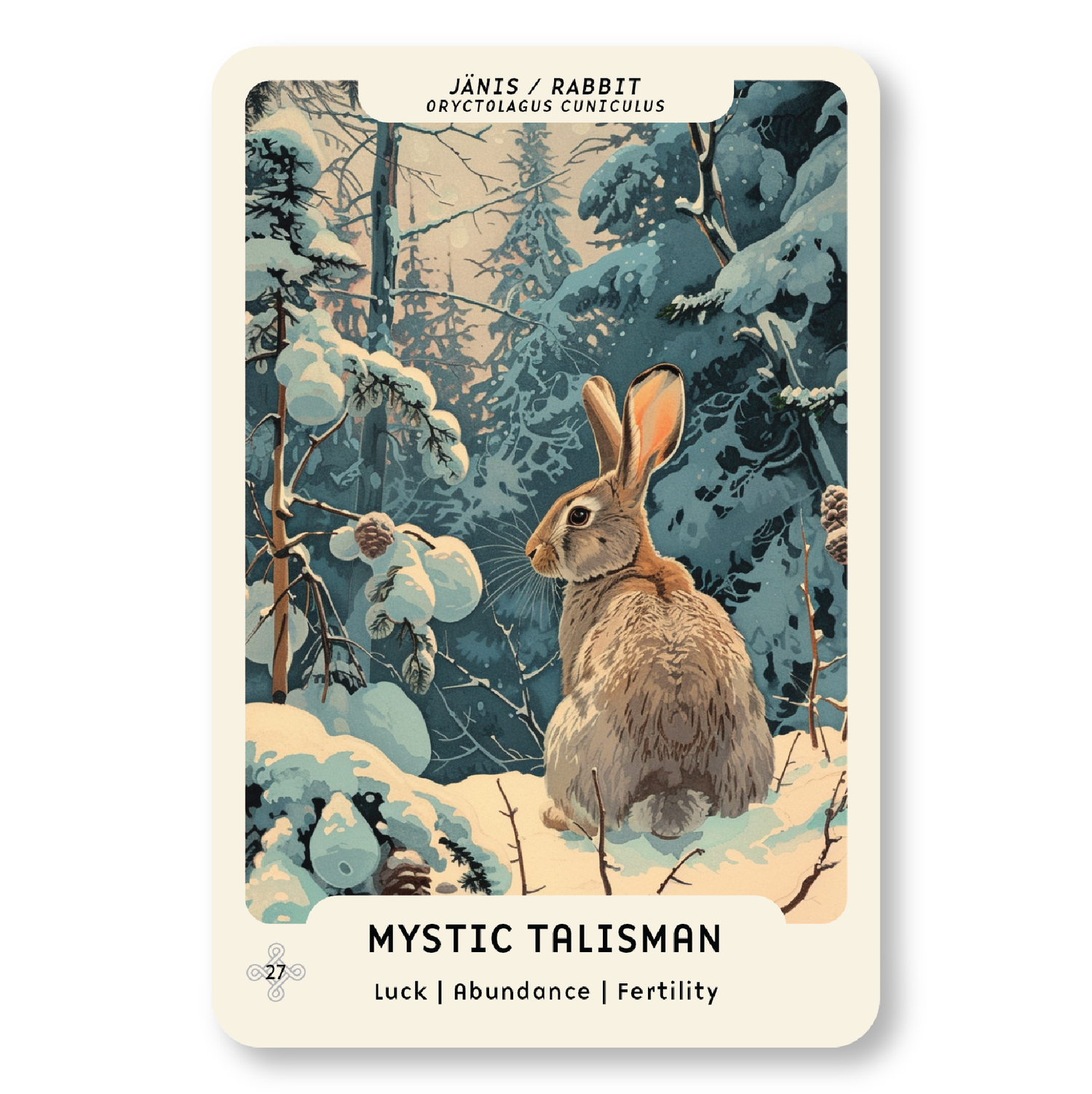 Jänis pomppii luoksesi hyvä uutinen mukanaan: onni ja runsaus ovat tulossa elämääsi! Tämä vilkas onnen talismaani muistuttaa, että elämässäsi voi olla alkamassa uusi, hedelmällinen vaihe. Polkusi avautuu kevyesti, kun luotat intuitioosi ja seuraat edessäsi olevia taianomaisia vihjeitä.