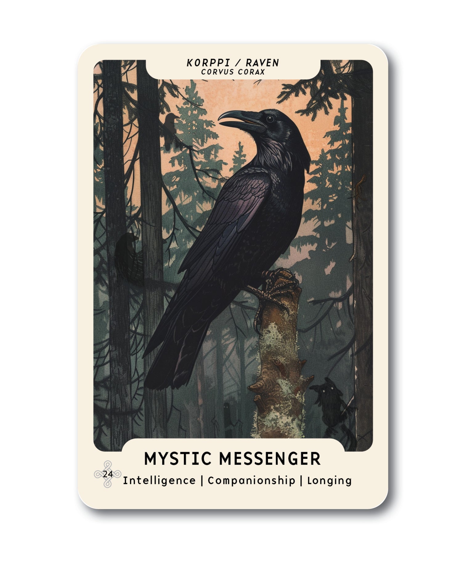Muista, että korppi kulkee rinnallasi etkä ole murheinesi yksin. Se kutsuu sinua luottamaan omaan älyysi ja selviytymiskykyysi. Viisaus on sitä, että keskität energiasi siihen, minkä voit muuttaa – ja päästät muusta irti.